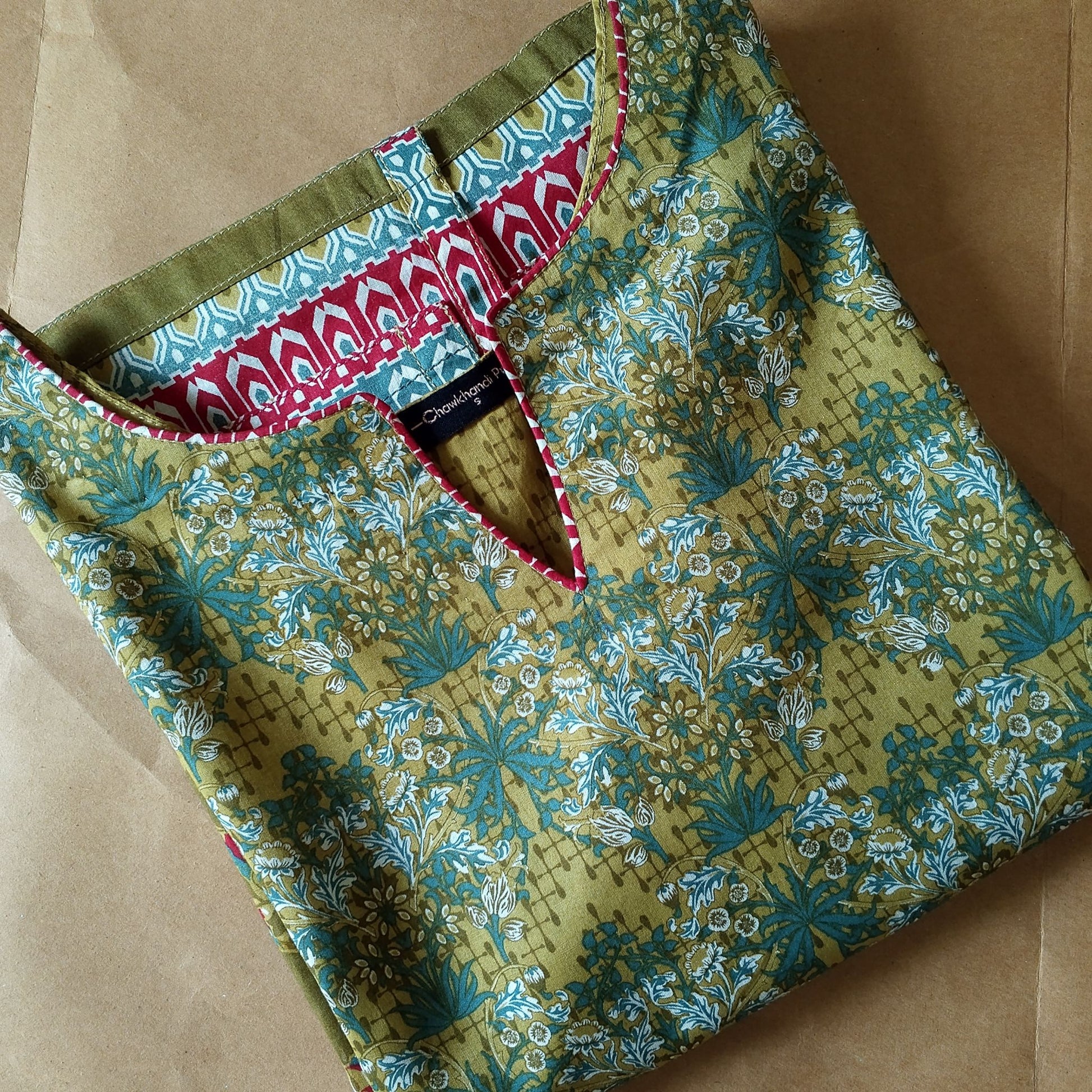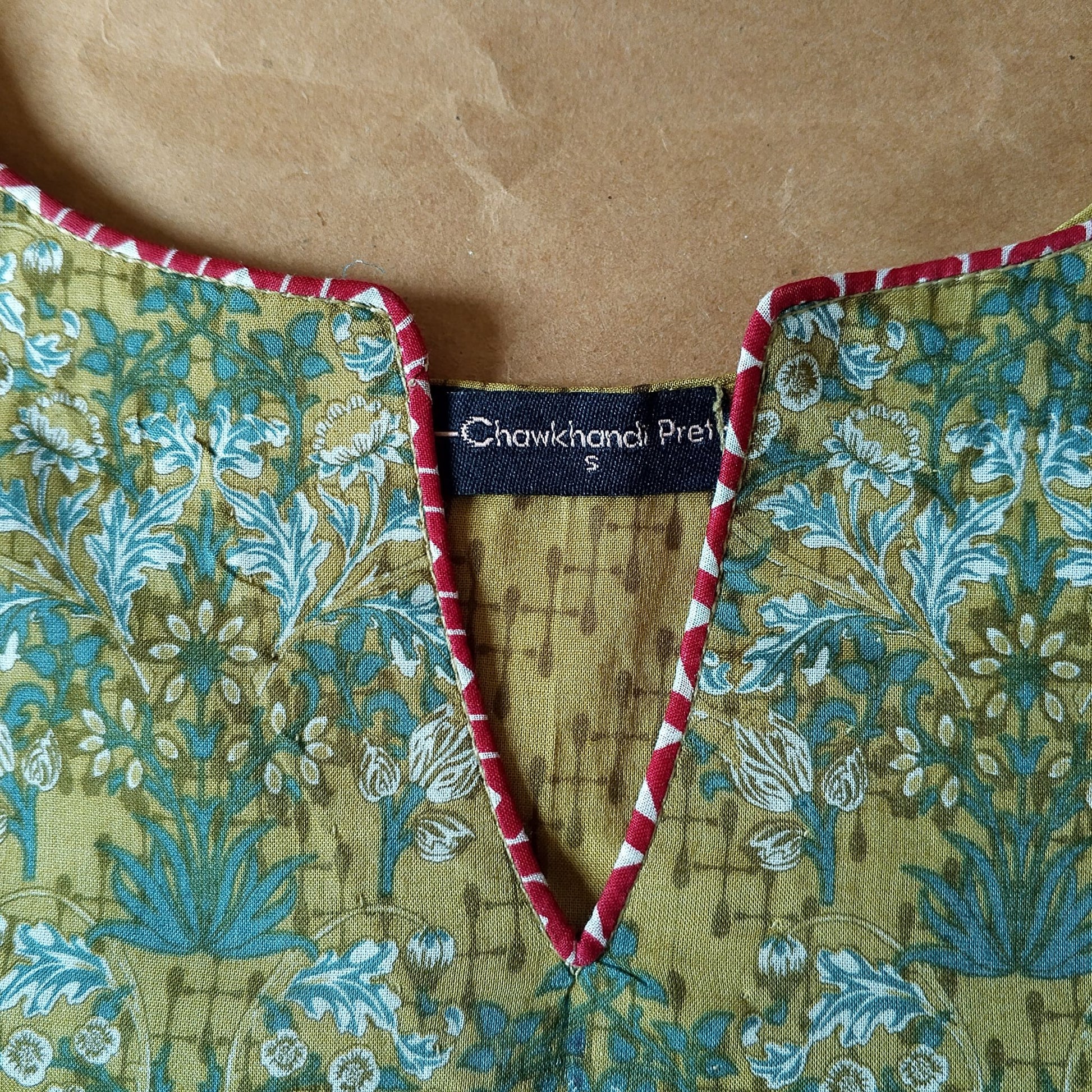 Neatly attached piping on neck and sleeves.