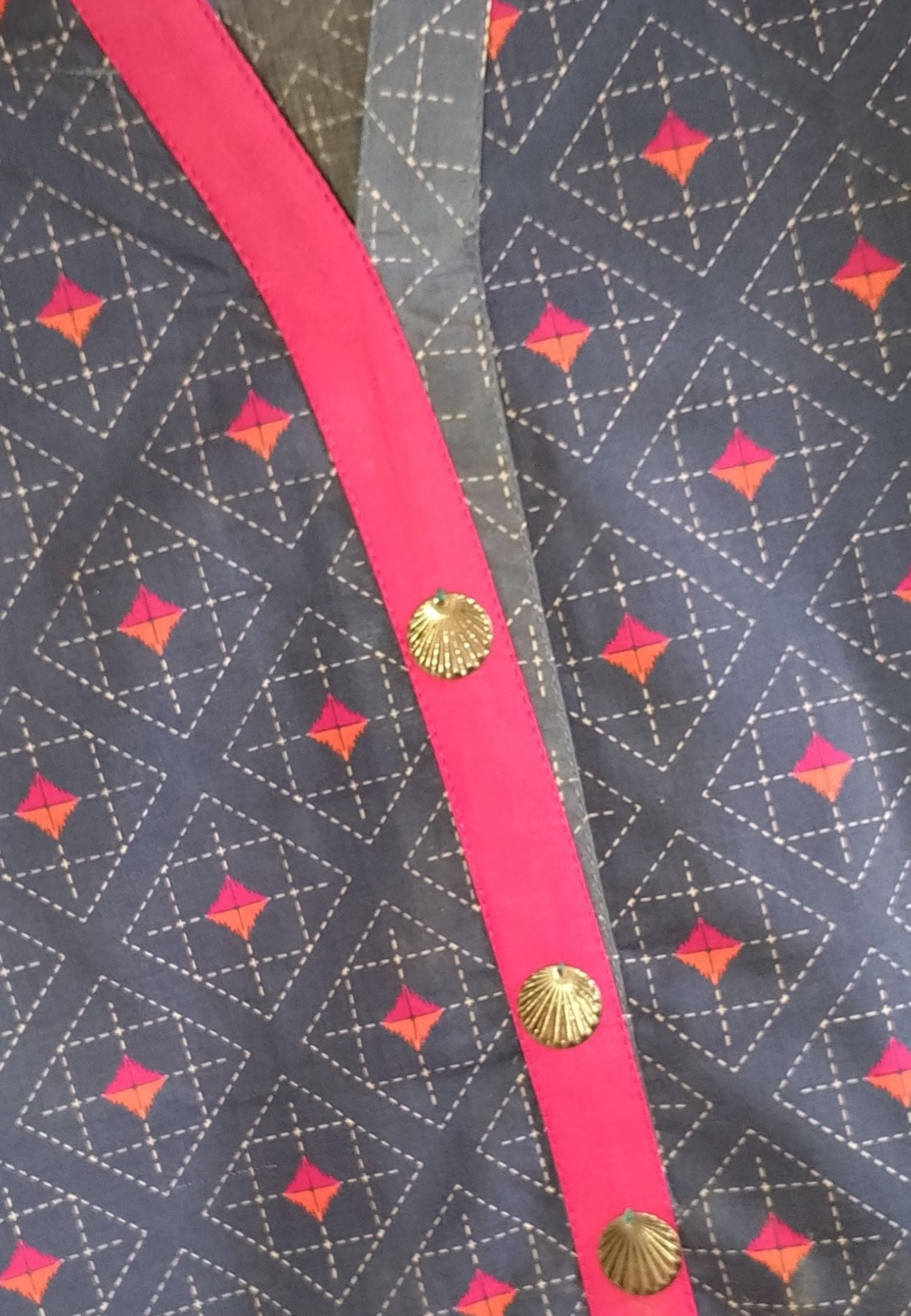 Boxy Kutra with boxy sleeves adorned with motifs on neckline, lace on side pockets